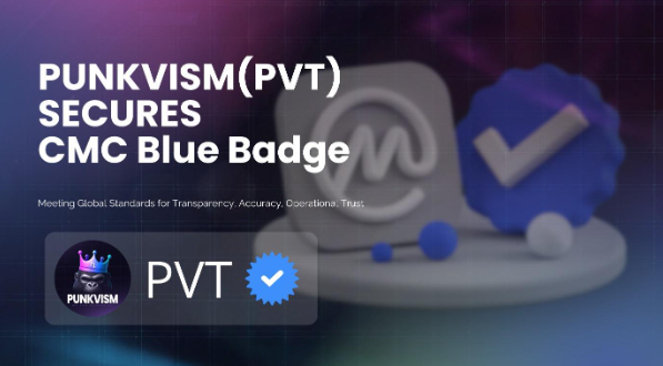 Web3 ecosystem PUNKVISM announced that its native token, PVT, has earned the official Verified Badge (Blue Tick) from CoinMarketCap (CMC), the world’s leading digital asset data and information platform.